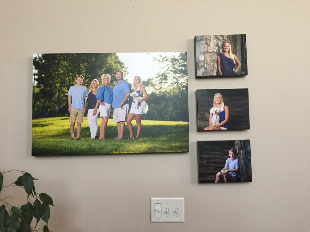 Many clients have sent us pictures of where their family portraits are hanging in their home from above the mantle to on the office wall. It is our mission to get your beautiful images from our cameras to the walls or bookshelves of your home. Whether it be contemporary metal wall art, an elegant canvas gallery for the hallway, or something beautiful for the desk in the office….we can do it! We specialize in being full service for our clients. We will walk you through every step of the process to ensure you have a one of a kind experience and walk away with beautiful art for your home that will last a lifetime.